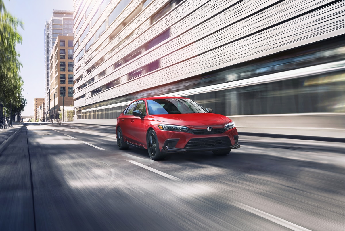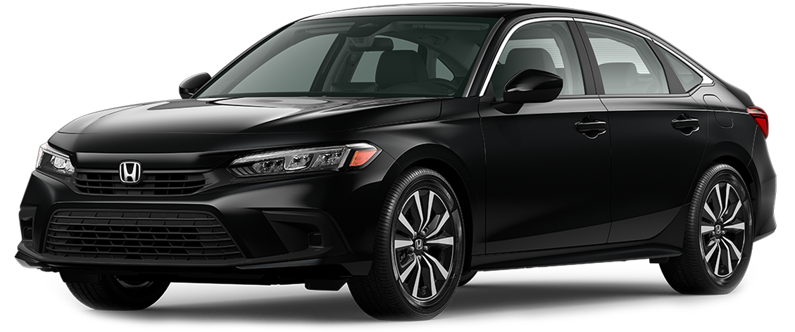 The Honda Civic EX builds off the Sport trim level features but with significant upgrades. To start, the engine is upgraded to the 180-horsepower 1.5-liter engine with the CVT (paddle shifters are dropped on the EX). Along with the engine, other upgrades include fantastic conveniences like a power moonroof, heated exterior mirrors, black cloth heated seats, and dual-zone automatic climate controls. The EX will have 17-inch alloy wheels with attractive black gloss inserts and flashes of chrome trim to set itself apart from the base and Sport trim.