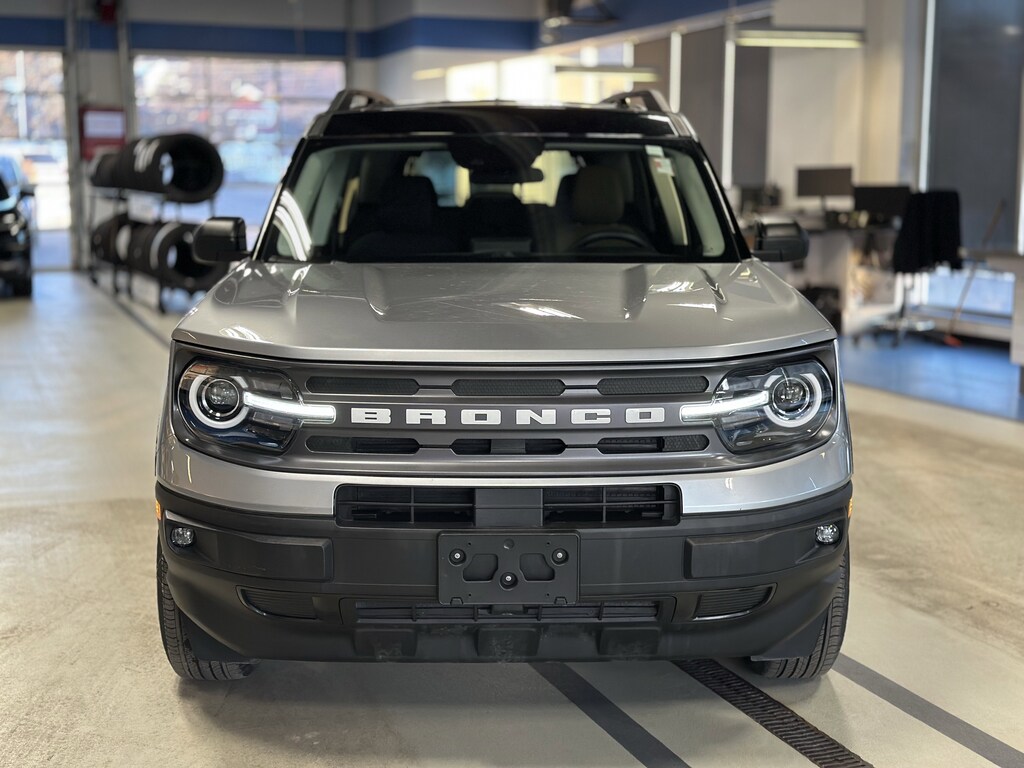 The 2023 Ford Bronco Sport Big Bend is a versatile compact SUV that serves as the popular step-up from the base model, emphasizing outdoor utility. It is powered by a 1.5-liter EcoBoost three-cylinder engine producing 181 horsepower and 190 lb-ft of torque, paired with an 8-speed automatic transmission and standard 4WD. This trim is recognized by its Carbonized Gray grille with white Bronco lettering and 17-inch high-gloss aluminum wheels. The interior features easy-to-clean cloth upholstery, a MOLLE strap system on the front seatbacks, and an 8-inch SYNC 3 touchscreen. Practical trail features include a safari-style roof for extra headroom, a built-in bottle opener in the hatch, and liftgate floodlights. It offers 32.5 cubic feet of cargo space and can tow up to 2,000 lbs!