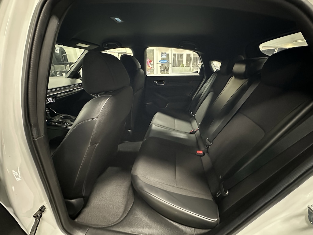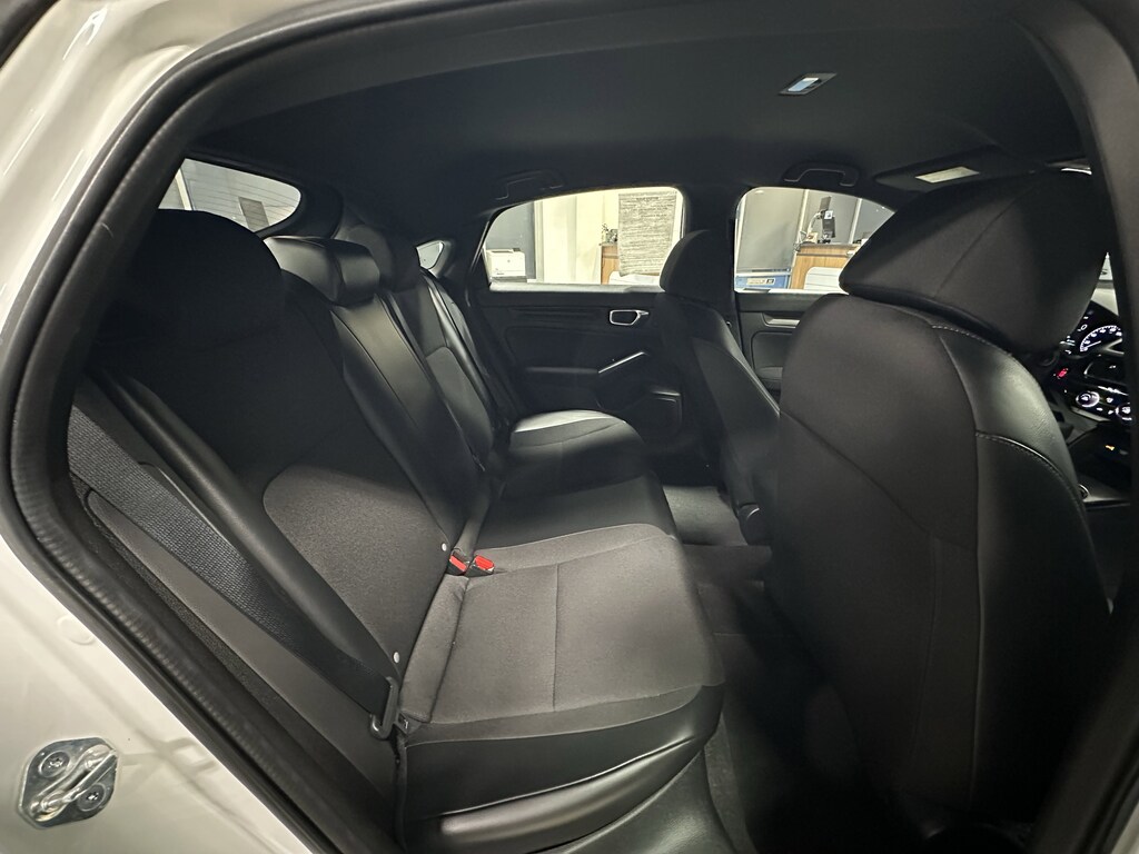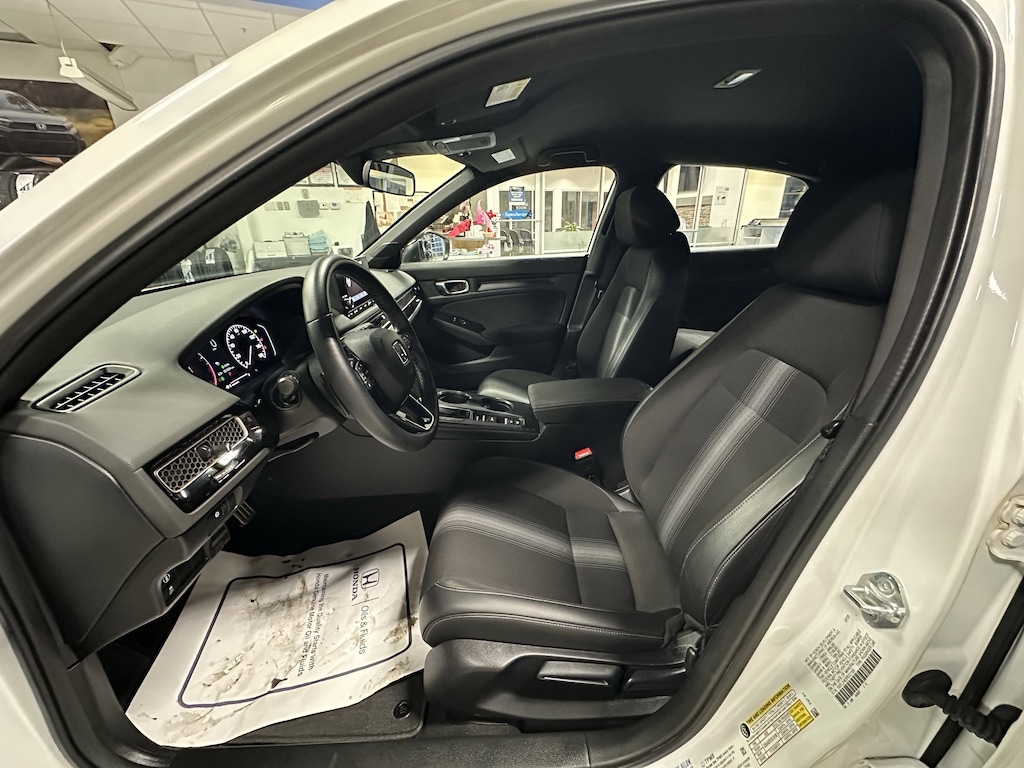 The 2023 Honda Civic Sport is an athletic trim available as both a sedan and a hatchback, balancing style with essential technology. It is powered by a 2.0-liter four-cylinder engine producing 158 horsepower and 138 lb-ft of torque, paired with a CVT (featuring paddle shifters) or an optional 6-speed manual for the hatchback. This trim is distinguished by 18-inch gloss-black alloy wheels, a chrome exhaust finisher, and black exterior accents. Inside, it features sport-exclusive cloth upholstery, sport pedals, and a leather-wrapped steering wheel. Technology includes a 7-inch touchscreen with Apple CarPlay and Android Auto, an 8-speaker audio system, and Smart Entry with Walk Away Auto Lock. Standard safety is provided by the Honda Sensing suite, which includes adaptive cruise control, lane-keeping assist, and traffic jam assist!