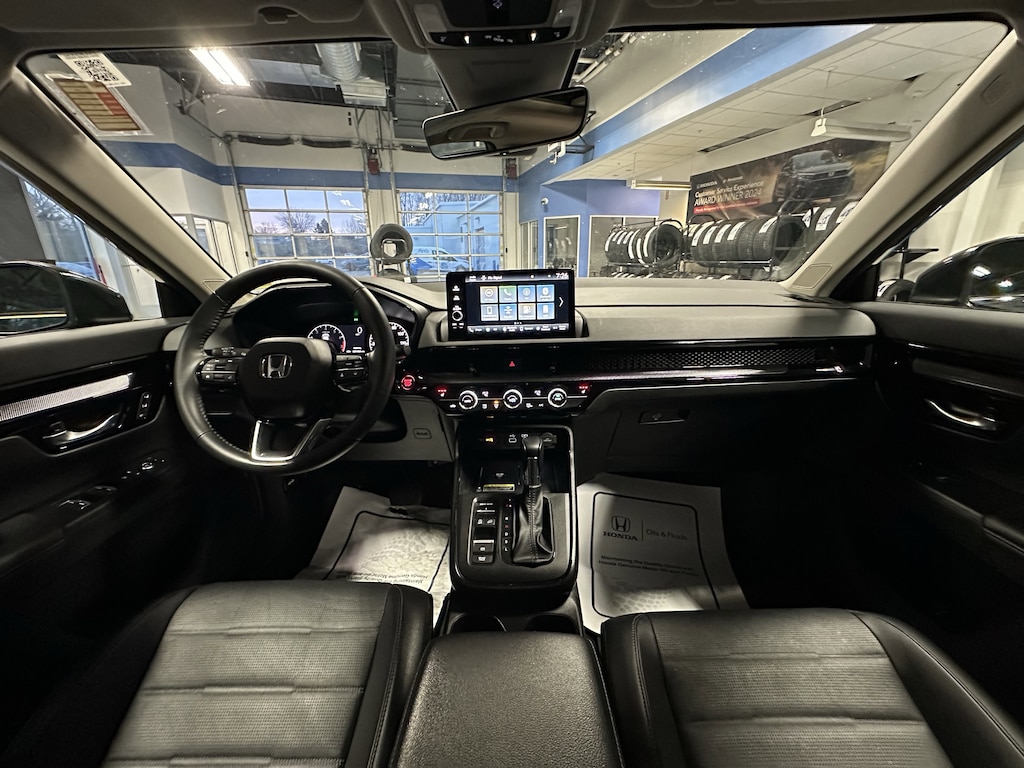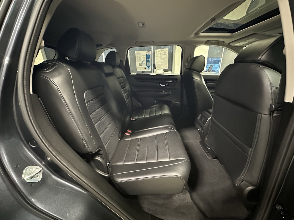 The 2024 Honda CR-V EX-L is the premium non-hybrid trim of the compact SUV, offering a blend of sophisticated features and turbocharged performance. It is powered by a 1.5-liter turbocharged 4-cylinder engine producing 190 horsepower and 179 lb-ft of torque, paired with a continuously variable transmission (CVT). This trim is available in both front-wheel and all-wheel drive, with the AWD version offering 8.2 inches of ground clearance. The interior is upgraded with leather-trimmed seating, a power-adjustable passenger seat, and a 9-inch touchscreen with wireless Apple CarPlay and Android Auto. Convenience is further enhanced by a power tailgate, a wireless phone charger, and a 320-watt 8-speaker audio system, all supported by the standard Honda Sensing safety suite!